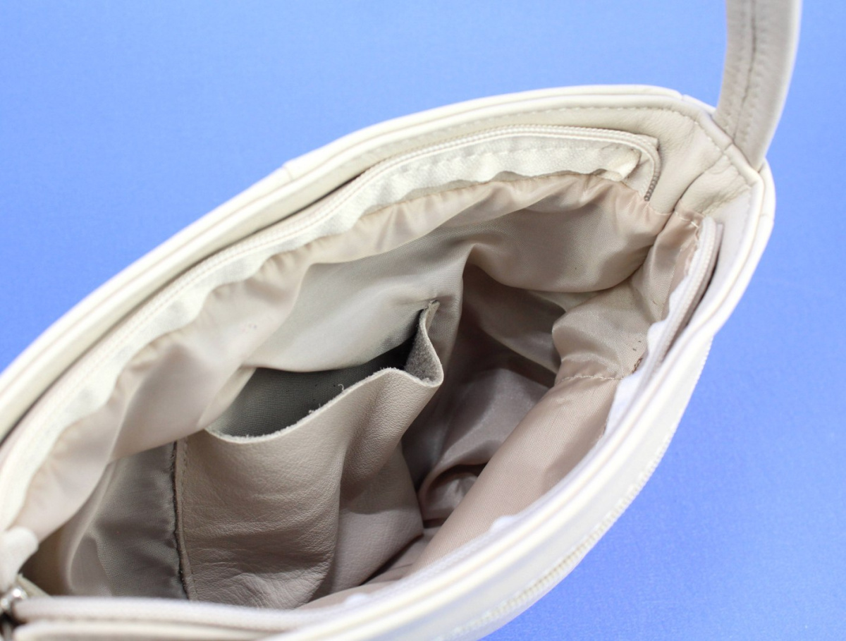 - Wewnątrz torebki znajduje się jedna duża komora z wydzieloną zapinaną na suwak kieszonką na dokumenty oraz kieszonką na telefon komórkowy