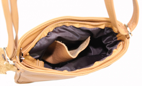 - Wewnątrz torebki znajduje się jedna duża komora z wydzieloną zapinaną na suwak kieszonką na dokumenty oraz kieszonką na telefon komórkowy
