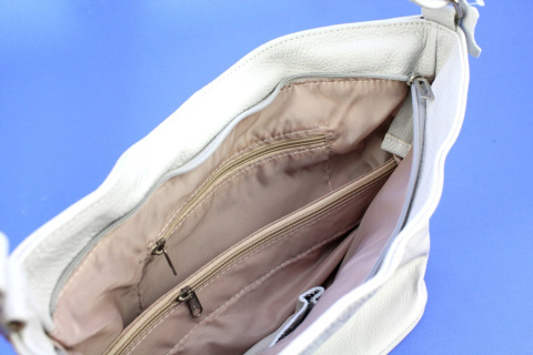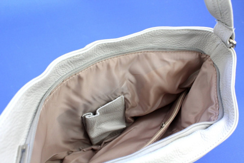 - Wewnątrz torebki znajduje się jedna duża komora z wydzieloną zapinaną na suwak kieszonką na dokumenty oraz kieszonką na telefon komórkowy
