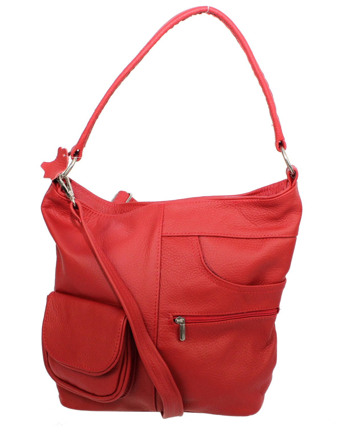 Skórzana torebka Magre będzie eleganckim dodatkiem każdej kobiety podkreślającym jej klasę i styl. Naturalna skóra, której użyto do wykonania modelu Janka, została poddana procesowi licowania. Dzięki temu zabiegowi jest ona odporna na wilgoć i zabrudzenia. Duże wymiary torebki - 34x28x13 cm umożliwią noszenie najpotrzebniejszych rzeczy wraz z teczkami formatu A4 w jednym, pojemnym modelu. Janka wyposażona została w dużą, główną kieszeń zamykaną na suwak błyskawiczny, a także w kilka dodatkowych kieszonek, które świetnie sprawdzą się jako schowki na klucze do domu czy chusteczki. Można ją nosić według uznania - na ramieniu lub w ręku, a to za sprawą dwóch pasków, z których jeden podlega regulacji. Jego długość wynosi 65-125 cm. Oferowany model dostępny jest w zawsze modnym, czerwonym kolorze.
