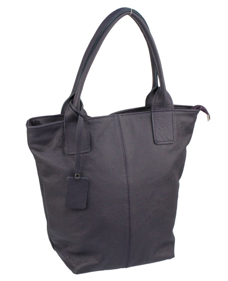 Torebka Skórzana MAGRE (PL) KLEOPATRA Shopper Bag Skóra Naturalna CIEMNA FIOLETOWA