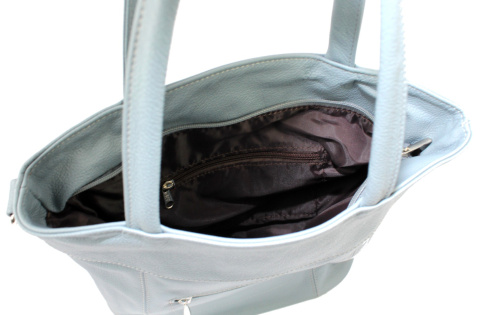 • Wewnątrz torebki znajduje się jedna duża komora, po bokach której znajdują się: zapinana na suwak kieszonka na dokumenty oraz kieszonka na telefon komórkowy