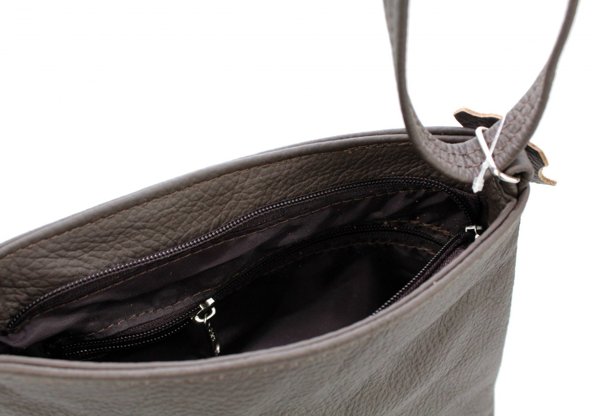 - Wewnątrz torebki znajduje się jedna duża komora z wydzieloną zapinaną na suwak kieszonką na dokumenty oraz kieszonką na telefon komórkowy