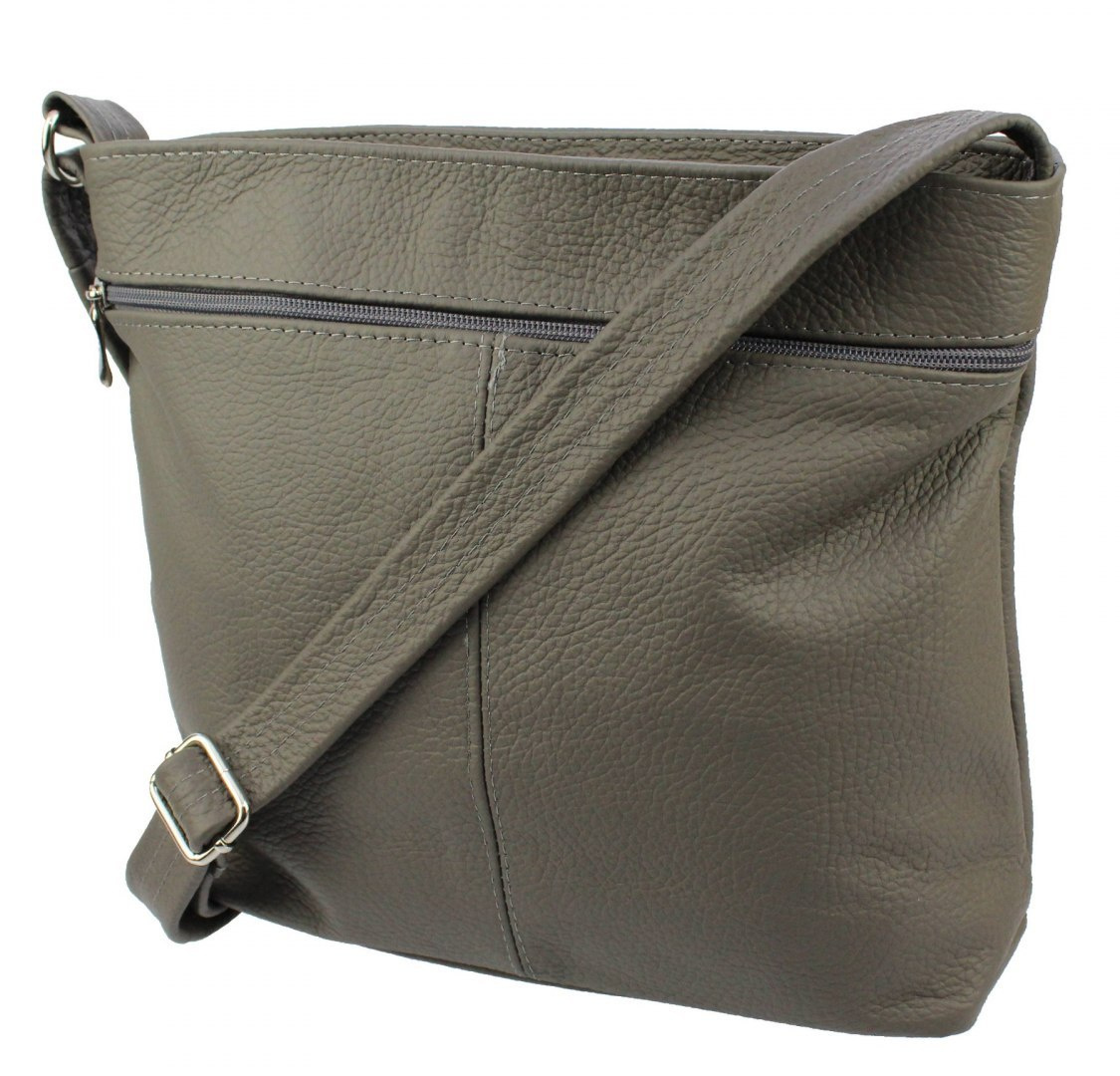 Grafitowo-beżowa torebka listonoszka ze skóry Magda - uniwersalny i praktyczny model