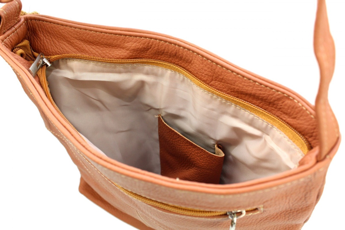 - Wewnątrz torebki znajduje się jedna duża komora z wydzieloną zapinaną na suwak kieszonką na dokumenty oraz kieszonką na telefon komórkowy.