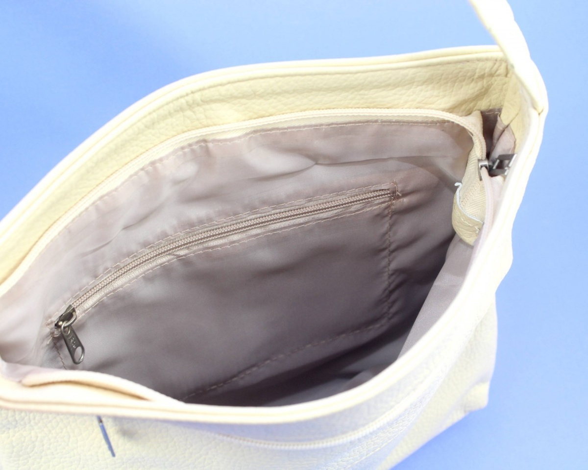 - Wewnątrz torebki znajduje się jedna duża komora z wydzieloną zapinaną na suwak kieszonką na dokumenty oraz kieszonką na telefon komórkowy