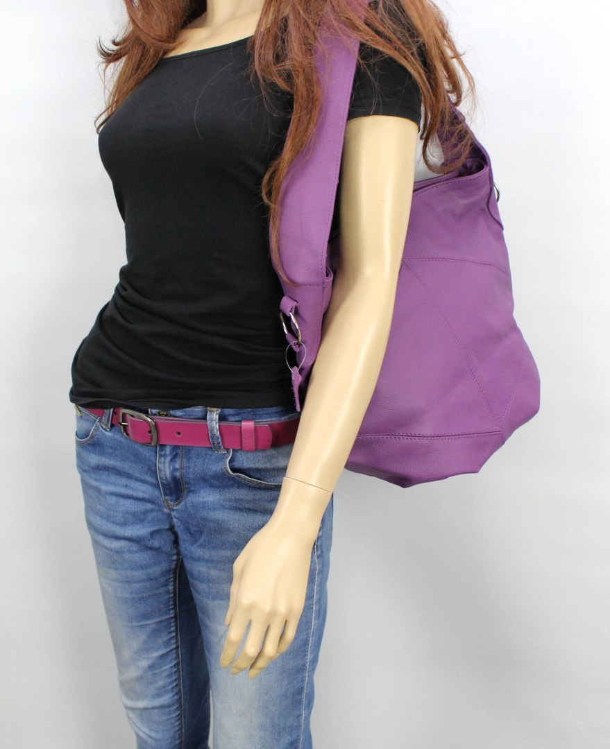 Torebka Skórzana MAGRE (PL) Shopper Bag ARLETA Skóra Naturalna FIOLETOWYSklep PolskaGalanteria to znany producent galanterii skórzanej. W swojej ofercie posiada między innymi niezwykle praktyczną torebkę skórzaną Shopper Bag Arleta. Ta piękna torebka wykonana ze skóry licowej w kolorze fioletowym to niebanalne wykończenie codziennej stylizacji. Torebka jest bardzo uniwersalna, możesz zabrać ją do pracy, na spotkanie biznesowe, a nawet w podróż. Zmieszczą się w niej wszelkie najpotrzebniejsze rzeczy. Jest to model średniej wielkości, ale bardzo pakowny. Torebki, które są wykonane ze skóry licowej, są o wiele bardziej trwałe, dzięki temu nie tracą swojego koloru i nie pękają. Przez długi czas wyglądają jak nowe, nawet przy intensywnym użytkowaniu. Producent zadbał, by wykonana były z wysokiej jakości skór z polskich garbarni.