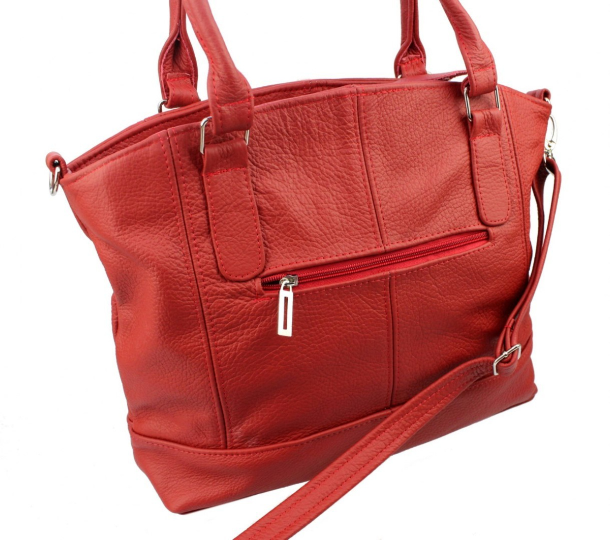 Torebka Skórzana MAGRE (PL) Violetta Bis Skóra Naturalna CZERWONYElegancka torebka polskiej firmy Marge w kolorze czerwonym to bardzo oryginalny dodatek. Będzie ciekawym uzupełnieniem stylizacji casualowych oraz tych bardziej eleganckich. Torebka Violetta Bis to produkt solidny i wykonany z wysokiej jakości skóry naturalnej. Dzięki temu torebka jest nie tylko piękna i bardzo stylowa, ale jednocześnie też trwała. Wytrzymałość tego produktu zwiększa również fakt, że jest to torebka szyta, a nie klejona. Dużą zaletą tego modelu są jego wymiary, które wynoszą 40x29x10,5 cm. Rączka ma długość 60 cm, a odpinany, regulowany pasek może mieć maksymalnie 120 cm. Wszystkie te parametry sprawiają, że torebka jest praktyczna i bardzo wygodna w codziennym użytkowaniu. Pomieści wszystkie najważniejsze przedmioty, które właścicielka chce mieć zawsze przy sobie.
