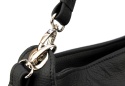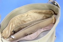 - Wewnątrz torebki znajduje się duża komora przedzielona przegrodą, w której znajduje się praktyczny schowek (kosmetyczka) zapinany na suwak.