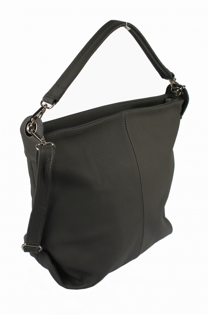 Torebka Skórzana Magre (PL) Skóra Naturalna Fiona Ciemny GrafitowyTorebki Magre to niezwykle piękne produkty, które wyróżniają się wysoką jakością. Model Fiona to skórzana torebka w kolorze ciemnego grafitu. Produkt ten w całości powstał w Polsce, a do jego produkcji użyte zostały wysokiej jakości skóry z polskich garbarni. Torebka została uszyta z największą starannością i nie ma żadnych klejonych elementów. Model Fiona posiada podszewkę oraz główną komorę zapinaną na suwak. Wewnątrz komory głównej jest przegroda, w której znajduje się praktyczny schowek. Torebka posiada dwa paski - krótszy o długości 40 cm oraz dłuższy, który jest regulowany, o długości 60 - 110 cm. Dzięki temu istnieje możliwość noszenia jej na różne sposoby.