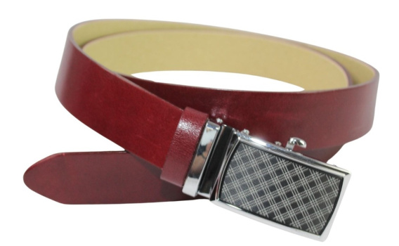 Pasek Skórzany Gładki PAS-MAX (PL) 35 mm AUTOMAT SAMOZACISK ŁAMANY KLAMRA "SREBRNA 29" Skóra Naturalna Licowa CZEREŚNIOWY k61