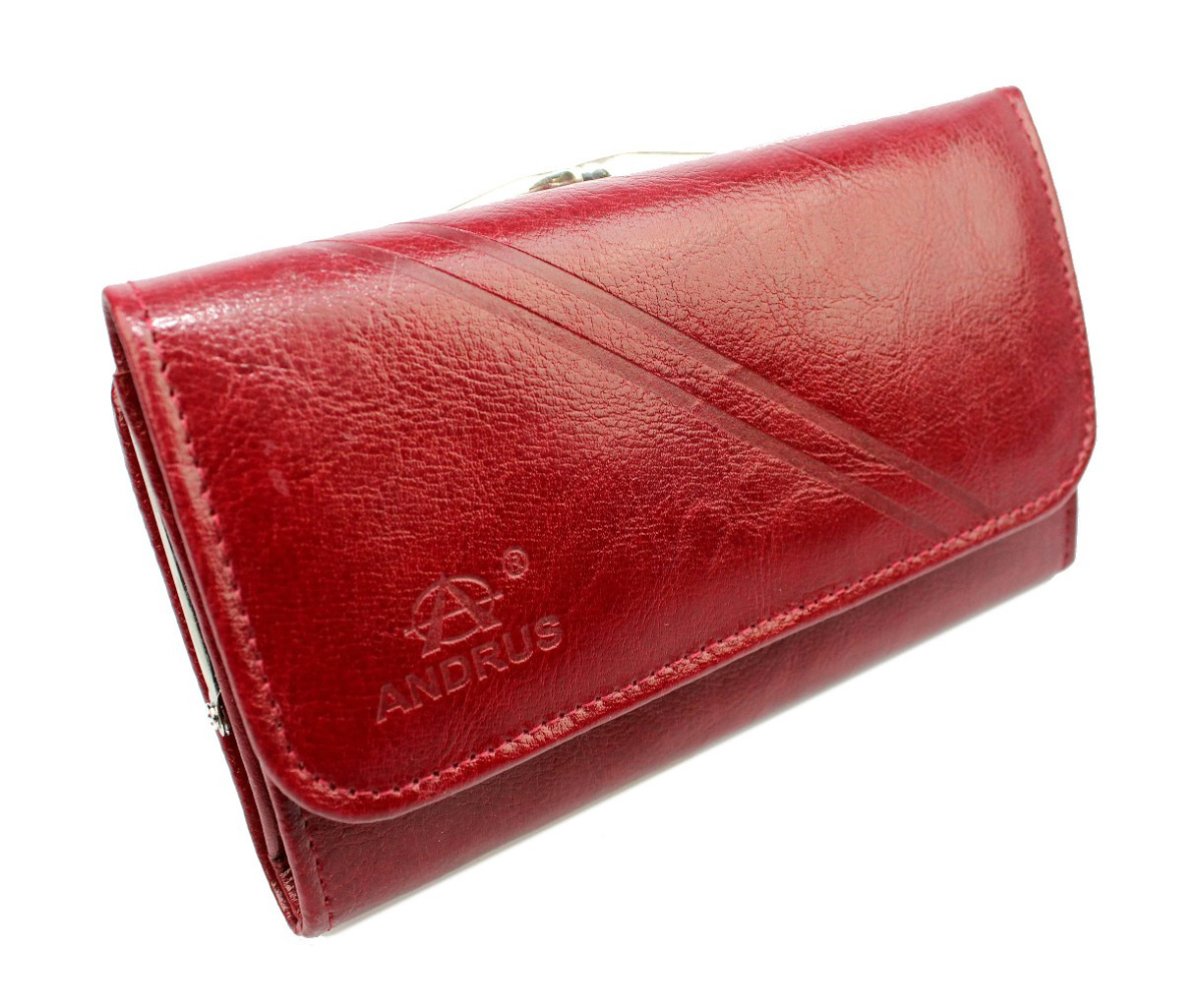 Wytrzymały Portfel Damski Skórzany ANDRUS (PL) 16 cm Klamra Na Zewnątrz Skóra Naturalna Pojemny